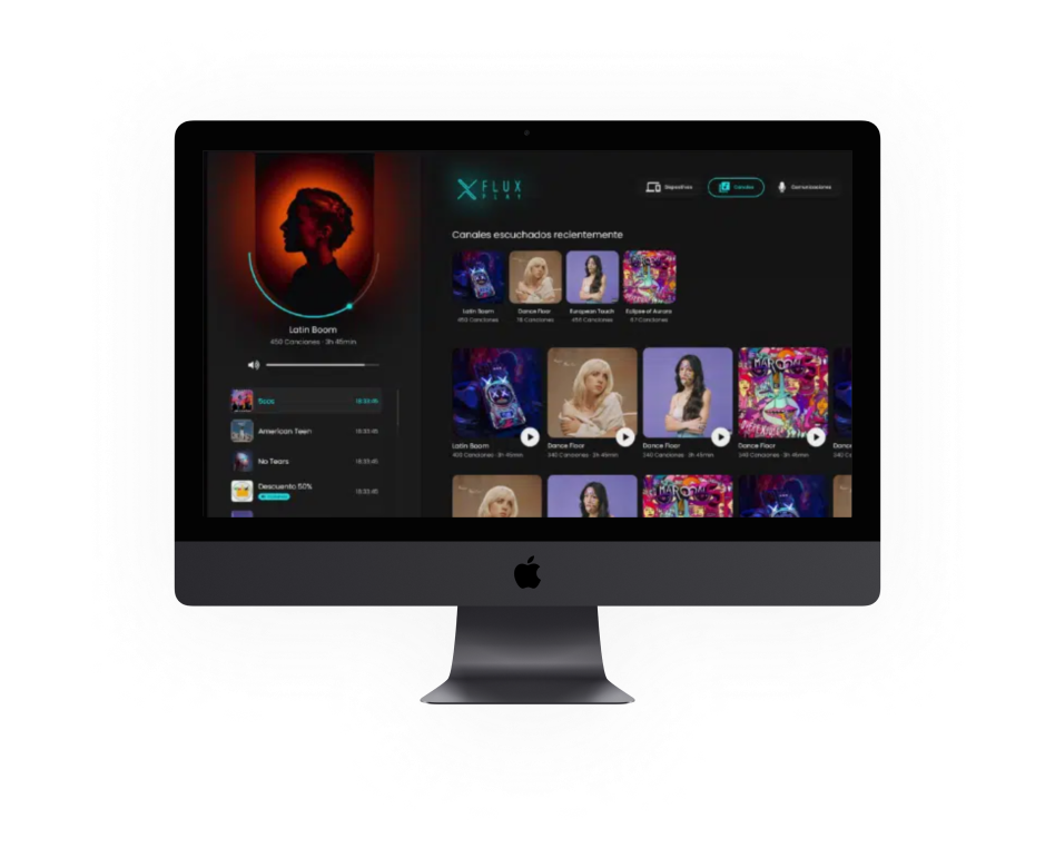 no solo se centra en la reproducción musical, sino que también incorpora un robusto sistema de análisis y control que permite a los administradores monitorizar y ajustar el contenido en tiempo real. Esta capacidad de gestión en tiempo real asegura que la música y los anuncios sean siempre relevantes y atractivos para los clientes, creando un ambiente agradable que promueve el bienestar y el consumo. La interfaz intuitiva y moderna facilita la navegación y el uso del sistema, permitiendo a los usuarios gestionar y personalizar fácilmente el contenido.
