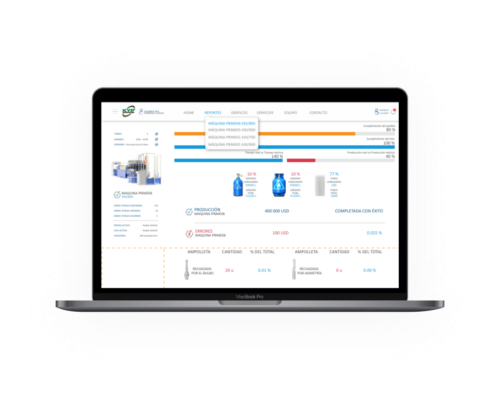 El proyecto para KYP Accesories se centra en el desarrollo de un sistema CRM personalizado. Este sistema permite a los clientes de KYP, una empresa líder en la manufactura de máquinas para la producción de ampollas farmacéuticas, monitorizar en tiempo real el estado de la producción. Los usuarios pueden conocer la cantidad de ampollas defectuosas por lote y las causas de los fallos, además de evaluar el rendimiento de los operarios. Este monitoreo continuo facilita la identificación y solución de problemas en el proceso de producción, mejorando así la calidad del producto final.